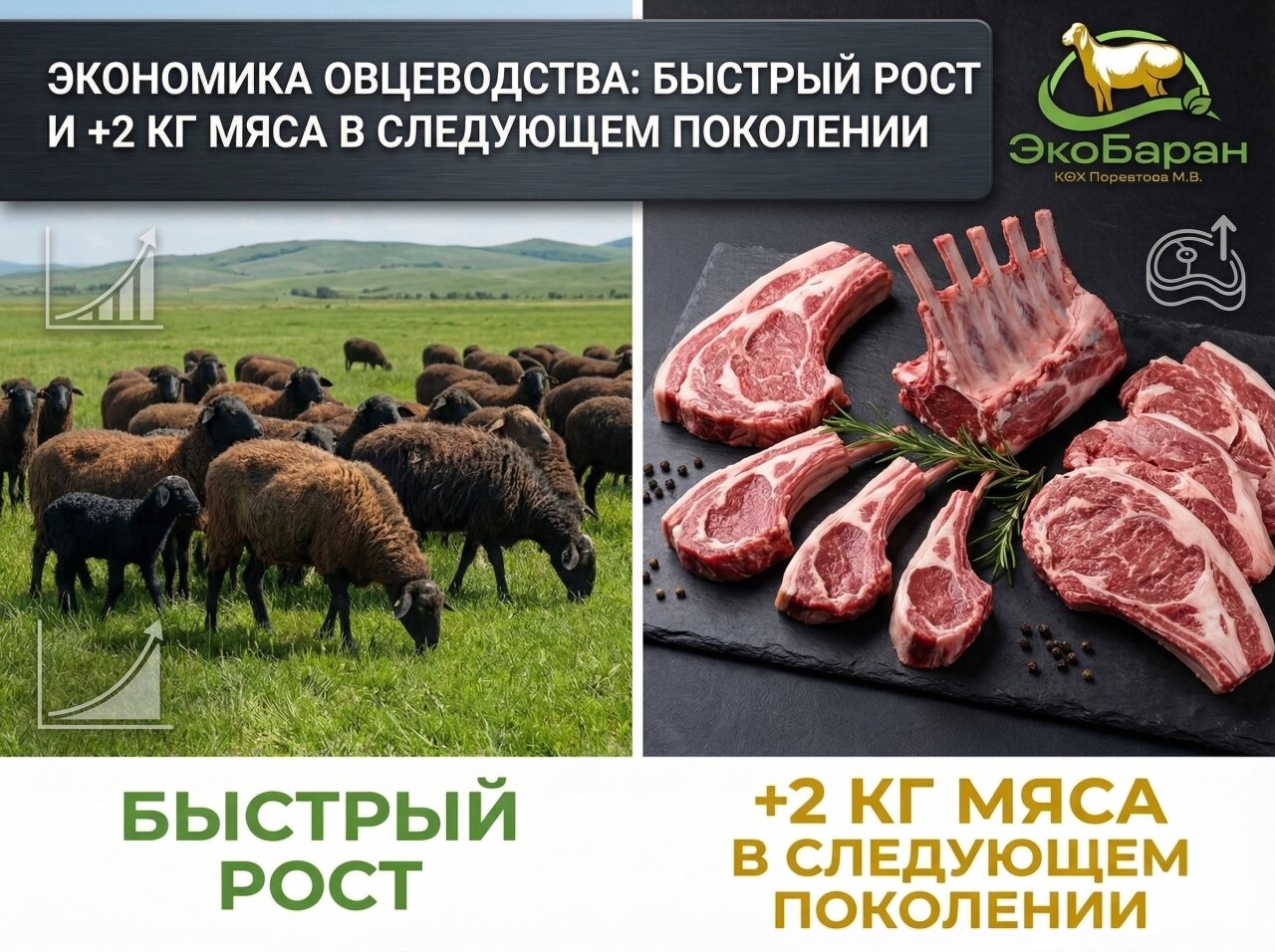 ЭКОНОМИКА ОВЦЕВОДСТВА: БЫСТРЫЙ РОСТ И +2 КГ МЯСА В СЛЕДУЮЩЕМ ПОКОЛЕНИИ